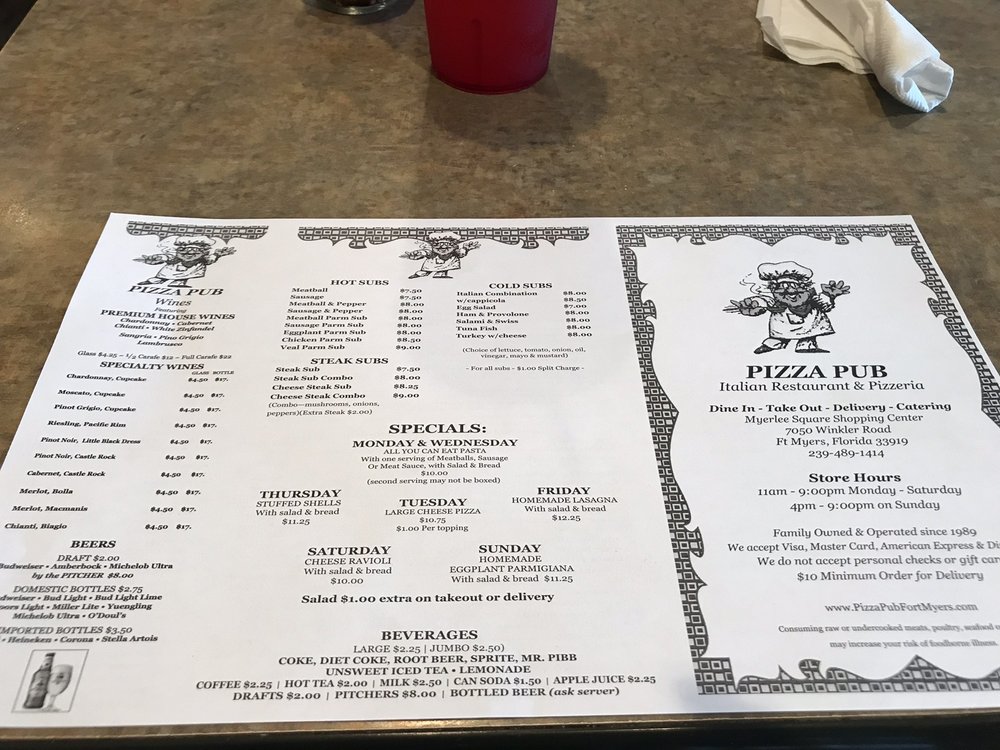 Welcome to Pizza Pub Italian Restaurant And Pizzeria, a cozy haven for Italian cuisine enthusiasts located in Fort Myers, FL. With a diverse menu that emphasizes classic pizza, this restaurant has become a local favorite. Guests rave about the hot, delicious dishes delivered right to their doors. The pizzeria prides itself on offering exceptionally reasonable prices, making it an ideal spot for budget-friendly dining.